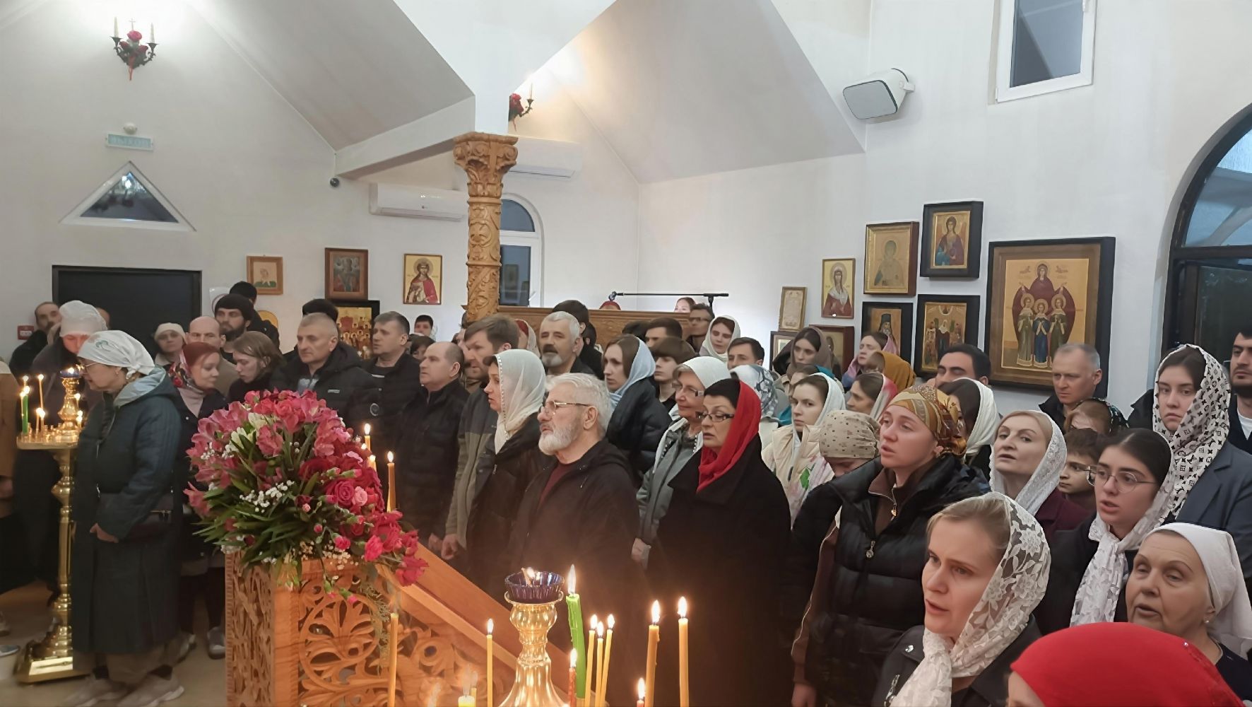 Более ста прихожан собрались в храме преподобного Сергия Радонежского, чтобы вместе встретить Светлое Христово Воскресение.
