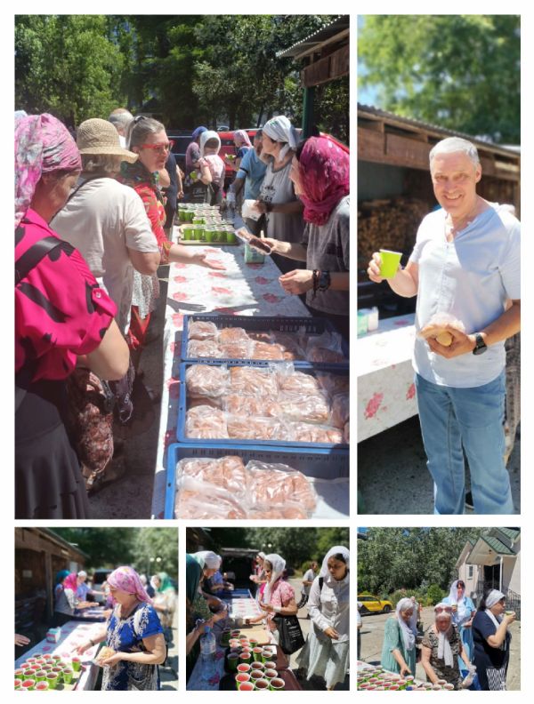 Благотворительный обед на территории храма в честь преподобного Сергея Радонежского на Мацесте.