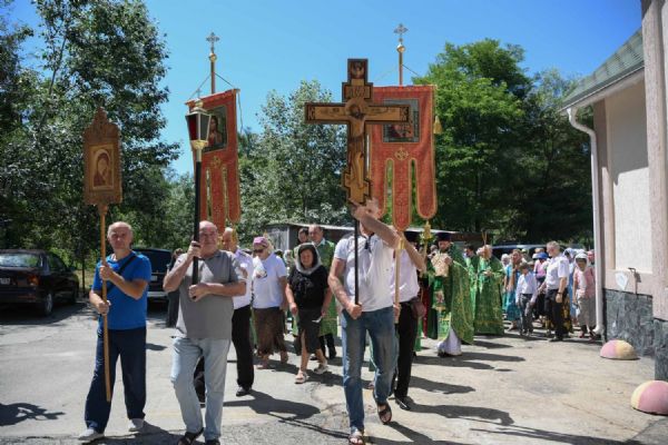 После Литургии состоялся крестный ход вокруг храма. Завершилось богослужение праздничным угощением.