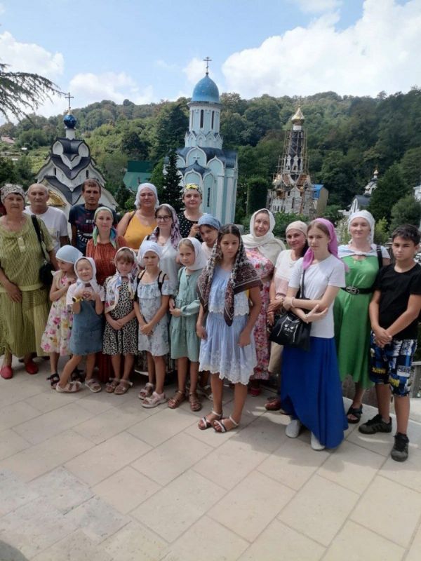 Несмотря на летние каникулы, воспитанники воскресной школы "Виноград", действующей при храме Преподобного Сергия Радонежского на Мацесте, отправились в паломническую поездку в Троице-Георгиевский женский монастырь.