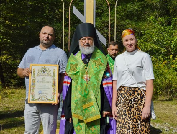 После освящения святыни супружеская чета Туровых- Георгий Викторович и Марина Владимировна- были удостоены Архиерейской грамоты за устроение Поклонного Креста.